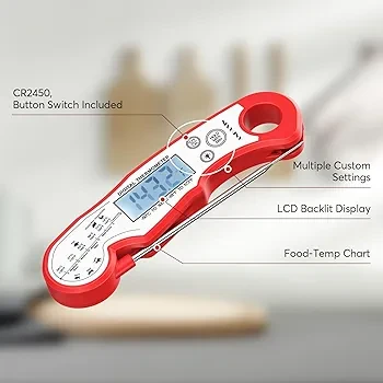 • [Backlight display] - Grilling thermometer features backlight LCD display to let you see clearly while cooking in the evening, indoors or outdoors.