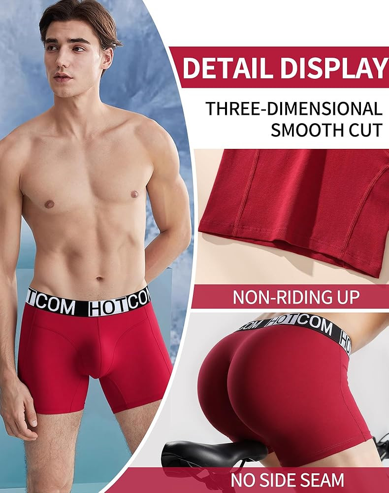 • Durable Waistband & Secure Fit: Featuring a Comfort Flex waistband with the signature Hotcom logo, these boxer briefs mens underwear stay snug without pinching, while anti-ride-up trouser legs prevent chafing.