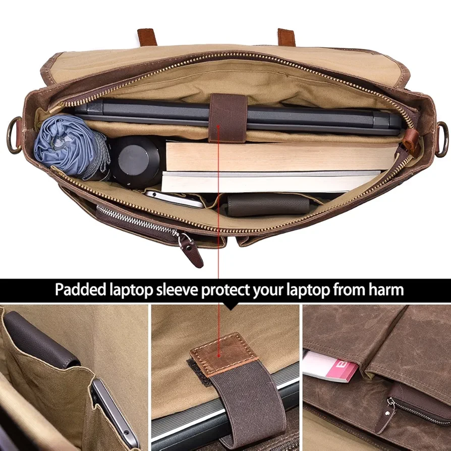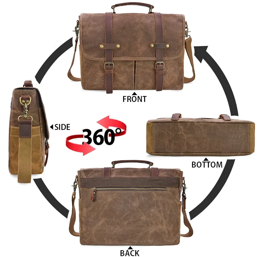 DURABLE & WATERPROOF: Men messenger bag is made of water resistant canvas with superior crazy horse cowhide leather strap for long-term use. Disordered wrinkles and scratches on surface create a vintage and wild looking.