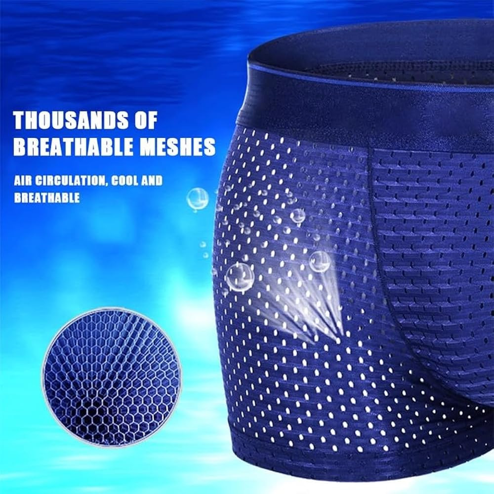 • Mens Boxer Underwear: This fabric added extra mesh design,which made the ice silk underwear became breathable underwear, Look through the picture carefully you will find a lot of small holes,ventilation holes to help keep you cool and comfort. Cool mesh fabric wicks moisture away from the skin to keep you cool and dry.