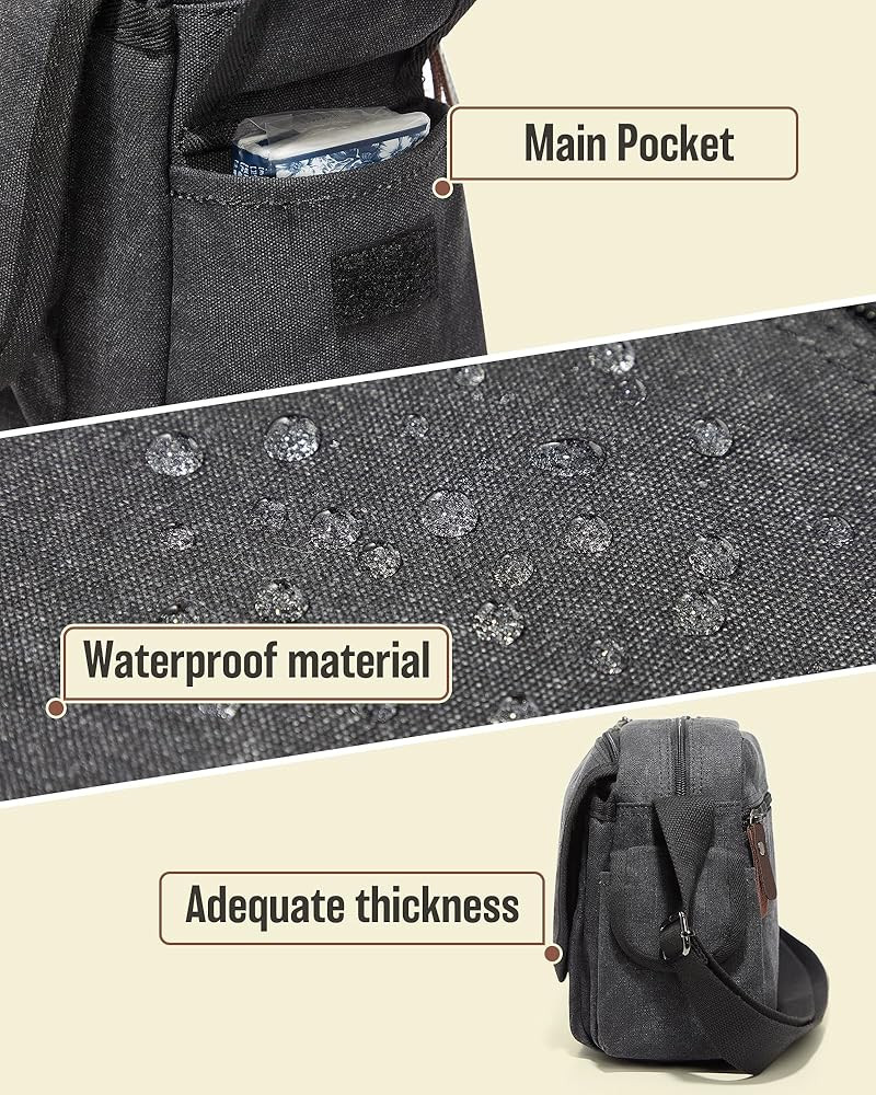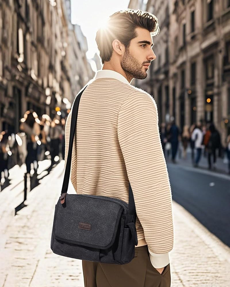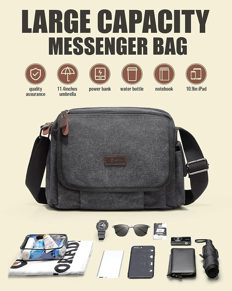 Messenger Bag for Men, Crossbody Bag Aesthetic, Water Resistant Unisex Classic Canvas Shoulder Bag