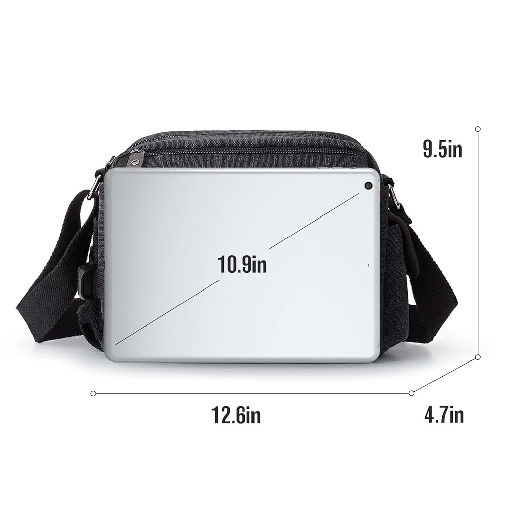 • Dimensions: The outer dimensions of this canvas messenger bag are 12.6x9.45x4.7 inches, shoulder strap length: 23.2-51.9 inches, it can hold multiple items at the same time.
