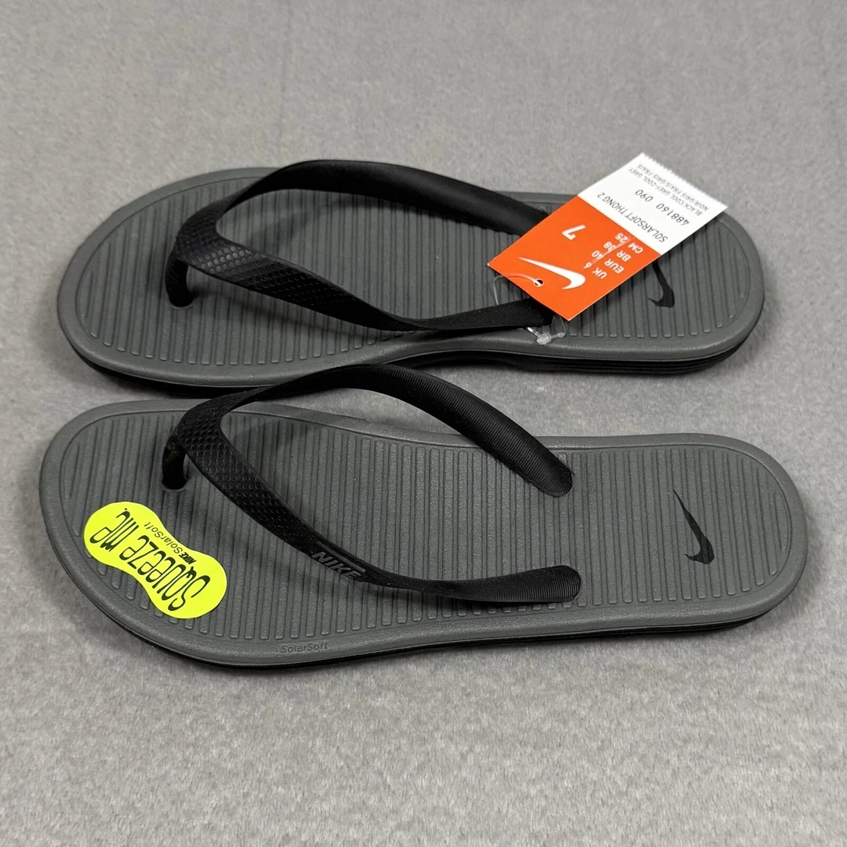 Nike Solarsoft Thong 2 Mens Flip Flops 488160-090 Black/Grey Size 7 NEW