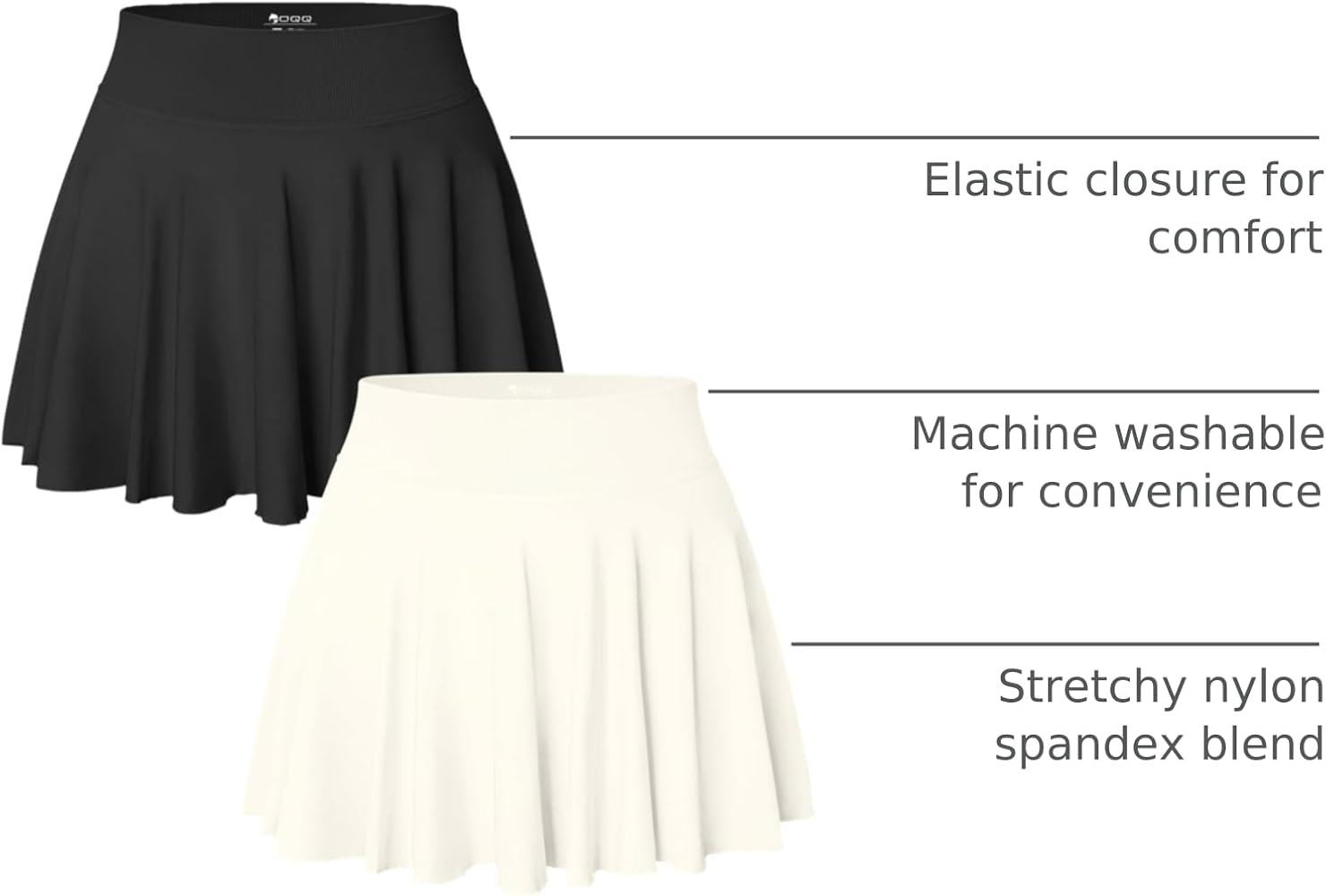 OQQ Women 2 Piece Skirts 2 in 1 Flowy Basic Versatile Stretchy Flared Casual Mini Skirts