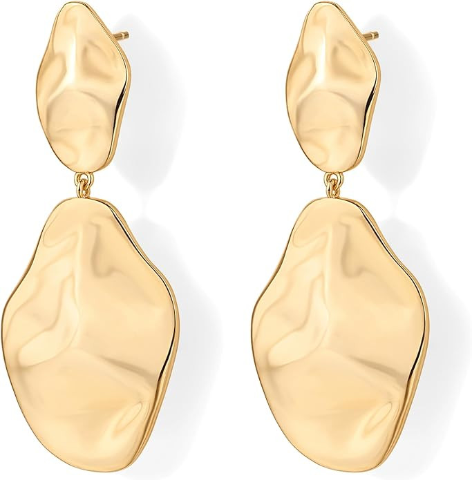 PAVOI 14K Gold Plated 925 Sterling Silver Posts Teardrop Statement Dangle Earrings | Lightweight Hammered Drop Dangle Earrings for Women