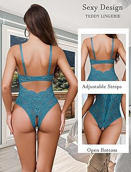FEATURES: The one piece teddy lingerie features with wireless stretch floral lace fabric, cut Out detail, help to hide little belly and make your figure look good; adjustable strap, make terry fit you the best; Hook and Eye Closure easy to put on and off.Sexy backless show off your charming figure.