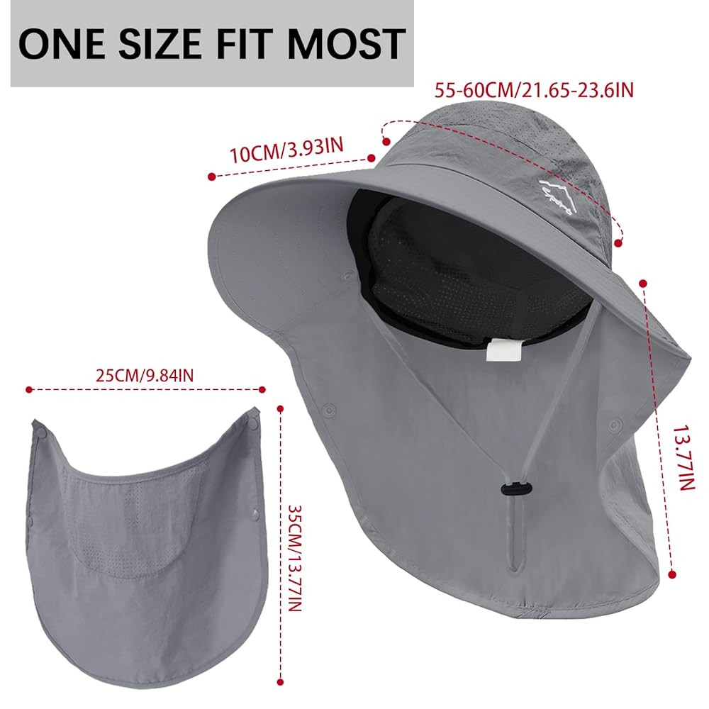 【360° Protection & Detachable】 The detachable mask design can enhance the sun protection effect of the eyes, mouth and nose. Anti-UV and UPF 50+ excellent sun protection keep yourself protected from the damaging rays. Wide Brim keeps your face and neck from the strong sun. 360 degree sweatband inside the hat and breathable lining absorb sweat efficiently.