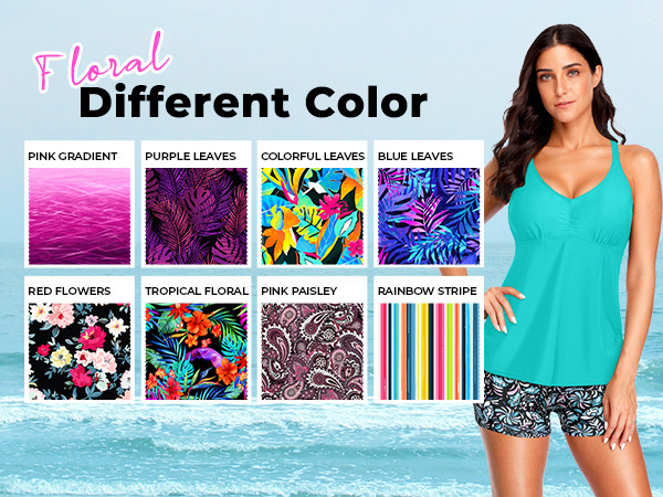 2 Piece Tankini: The red floral printed two piece tankini swimsuit comes with shorts, removable padded bras, adjustable wide shoulder straps, and an athletic style.