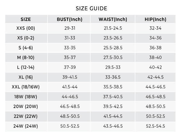 Multiple sizes for you to choose from: XS(US 0-2), S(US 4-6), M(US 8-10), L(US 12-14), XL(US 16), XXL(US 18). Please choose the suitable size according to the detailed size measurement guide.