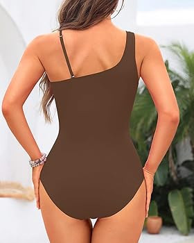 Brown One Piece Bathing Suits: The removable padded cups of this tummy control swimsuit add comfort, which is perfect for women, girls and teenagers.