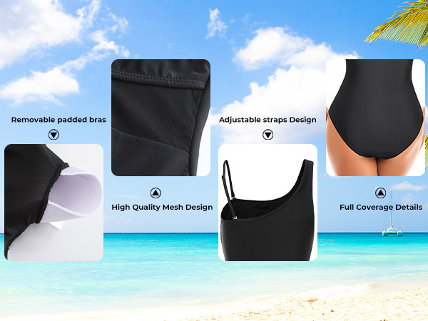 Sexy Mesh Swimsuits: This 1 piece swimsuit is designed with a cutout style and see-through mesh inserts for a chic and slimming look. Unique asymmetrical cut design adds a touch of fashion to your overall look.