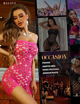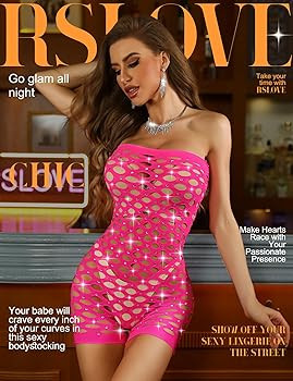 Enhance Your Sensuality: Unleash your inner allure with our RSLOVE fishnet lingerie. This captivating piece features dazzling rhinestone details that beautifully accentuate your curves, creating an irresistible and seductive look;