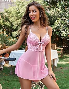 Lace babydoll lingerie dress featuring a breath taking deep V-neck,visible lace cup,little bow decoration in breast area. Sexy mini length with adjustable spaghetti straps help to hold your breast more perfectly, highlights your sexy legs