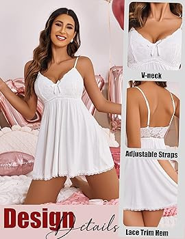 ❤Unique design: Babydoll lingerie nightgown for women features floral lace patchwork on top, well scalloped lace trim on the edge of flowy skirt bottom, mini bow decor in the middle of lace cups, enhance women femine charms.