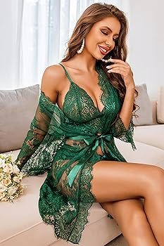 Package Content: 3pack Floral Lace Lingerie Set With Mesh Robe (1 X Lace Robe,1 X Lace Bra,1 X Lace Panty,1 X Satin Belt).