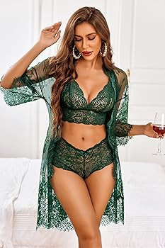 Features:This is a 3 piece set consisting of a lace robe、an unlined floral lace bralette and a panty.They are made of high-quality lace fabric.Make you more beautiful,fashionable,and elegant.