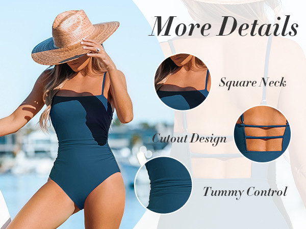 Design: Square Neck One Piece Swimsuit is A Classic Staple Everyone Needs for Hot Summer Days, Which Features Ruched Front for More Tummy Control and Hollow-out Back.