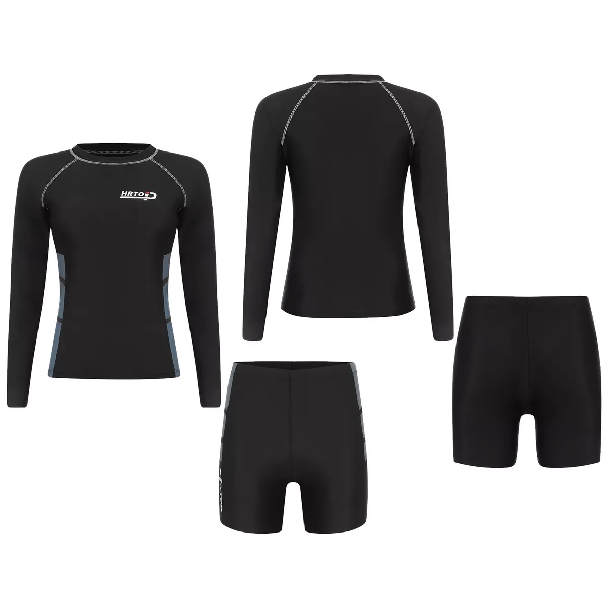 Full coverage rash guard set guarantee protection from sunburn and UV rays. Quickly-dry fabric keeps you always feel cool and dry.