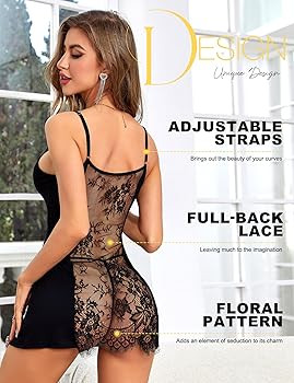 Flattering Silhouette with Strap Adjustment: The sexy chemise's well-crafted cut and distinctive A-line silhouette perfectly highlight your figure's advantages, allowing you to radiate elegance and confidence from every angle. Lace nightwear adjustable straps offer you the ease of finding the perfect length and comfort, enhancing your overall wearing experience with effortless poise.