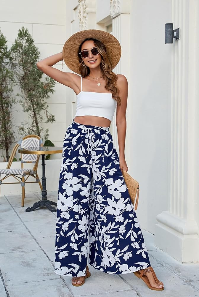 Lightweight Breezy Material: These bold floral palazzo pants are so stunning and feminine! Made from 100% polyester premium airy fabrics, super soft and breathable, chic wide-legged style brings flows beautifully to your every step in summer time