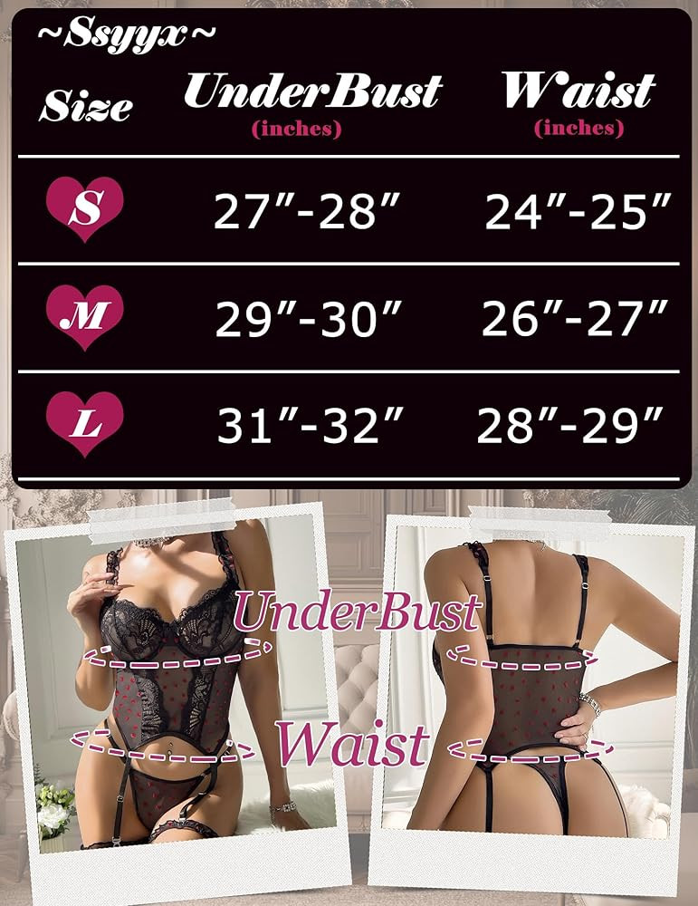 Designed with high elasticity, this sexy costume outfit for women underwear is comfortable to wear and easy to put on and take off.This underwear set is made of high quality fabric, which is soft to touch and breathable. It closely fits the body curves and gives you a comfortable wearing experience whether corset lingerie for women is for daily wear or special occasion use.