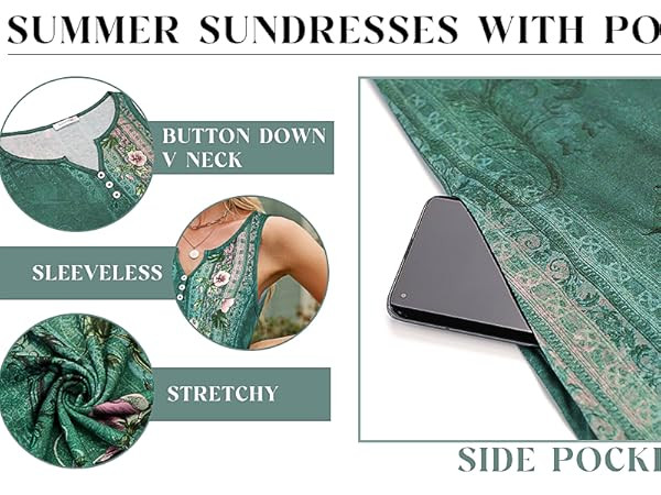 Feature:sleeveless sundresses for women casual beach,floral printed,v-neck,knee length,swing hem,two side pockets.casual summer dresses for women 2025 vacation,perfect to hide your belly and hip