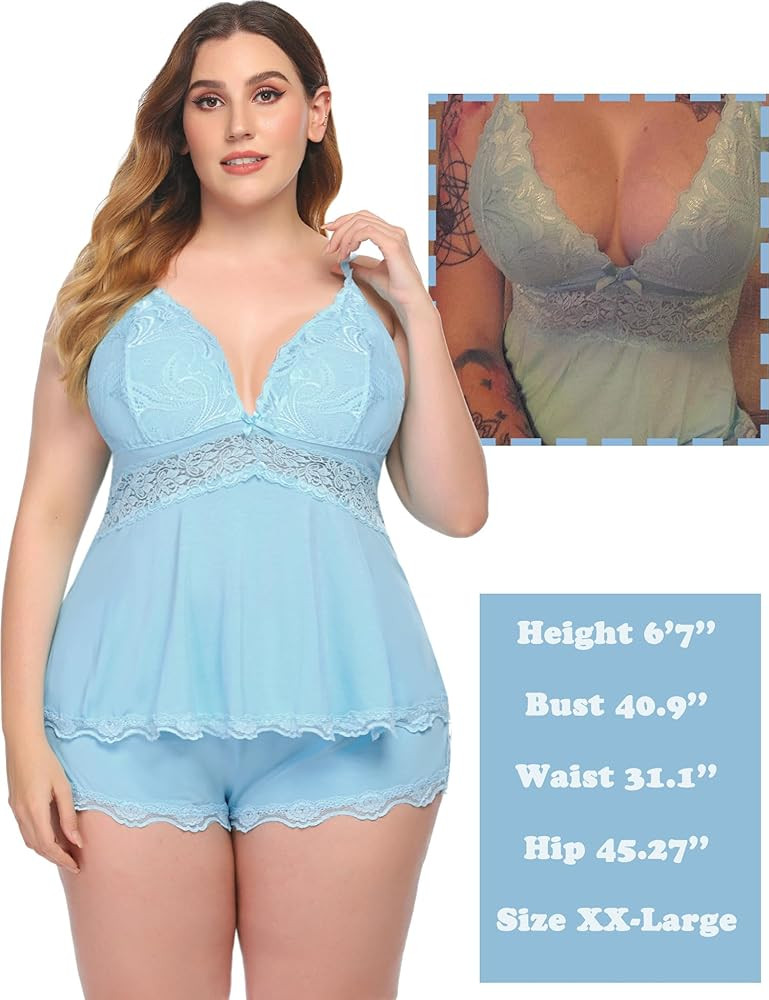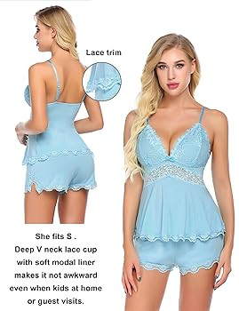 Avidlove short pajamas camisole Set featuring lace cups patchwork, adjustable spaghetti straps, drawstring waist. Very cute. Its casual style makes it not awkward even when kids at home or guest visits. The Pajamas Set is comfortable for your life