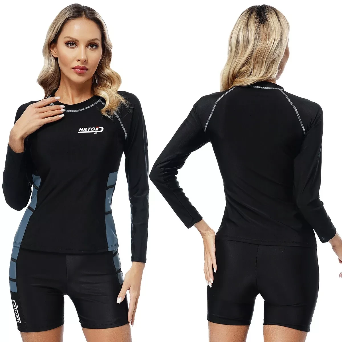 Full coverage rash guard set guarantee protection from sunburn and UV rays. Quickly-dry fabric keeps you always feel cool and dry.