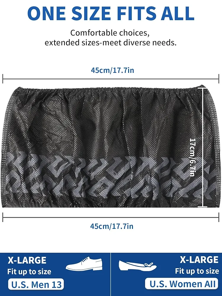 • Perfect XL Size Fit - Designed to fit up to men's US size 13 and all women's US shoes, 45X17cm(17.7x 6.7 inch) these shoe covers are extra-large to accommodate various shoe sizes comfortably.